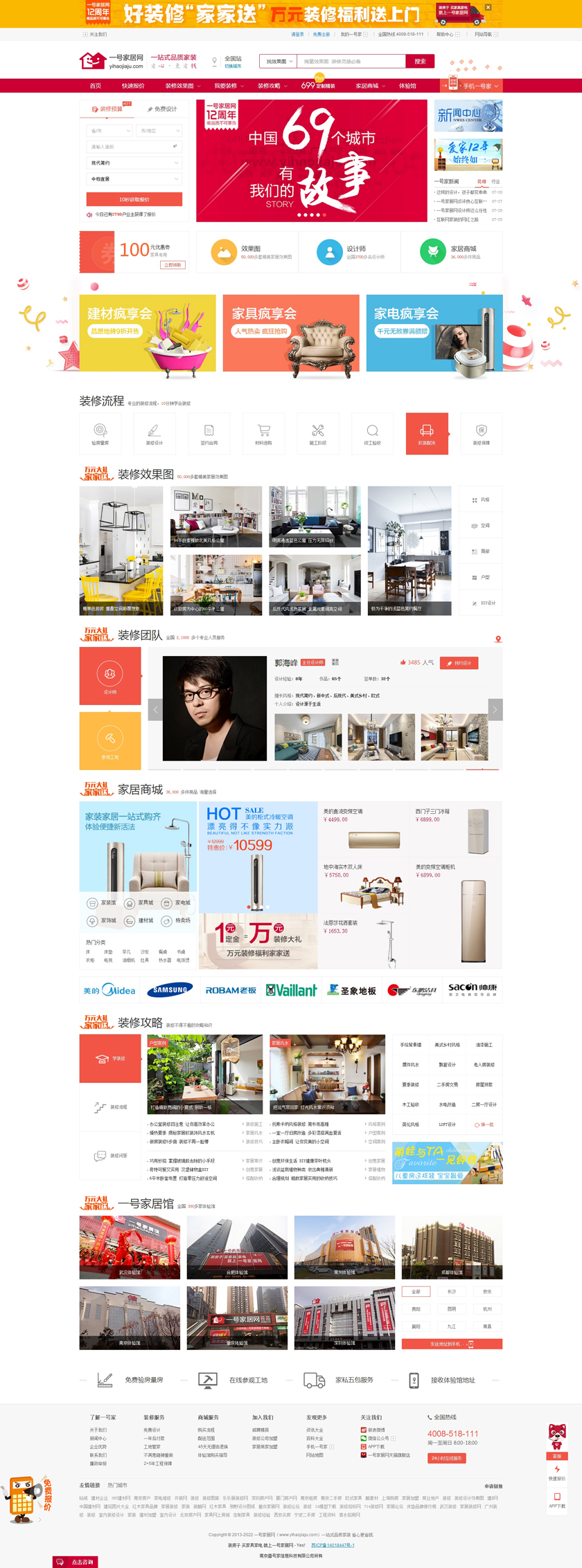 一号家居网,隶属南京壹号家信息科技有限公司。12年整体家装服务品牌,以创新服务产品为核心,集装修、设计、施工、建材、家具、家电等一系列业务产品为主导的家装O2O电商平台,提供“省心•更省钱”的一站式品质家装服务。