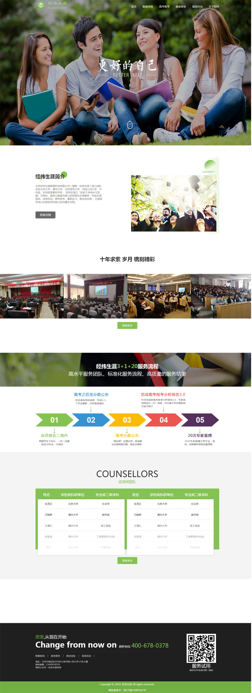 Project Description 北京经纬生涯教育科技有限公司(简称:经纬生涯)核心团队来自北京大学、清华大学、北京师范大学、中国人民大学、中科院、社科院等著名学府, 经纬生涯以“促进个体成长与发展”为使命,提供以数据为核心的结果化生涯服务,包括生涯规划、选考科目、高考报考、兼职实习、就业创业等, 已逐渐形成以生涯咨询为核心的完整生态链。 Official website address 大渡口http://www.jingweishengya.com/ I want to share